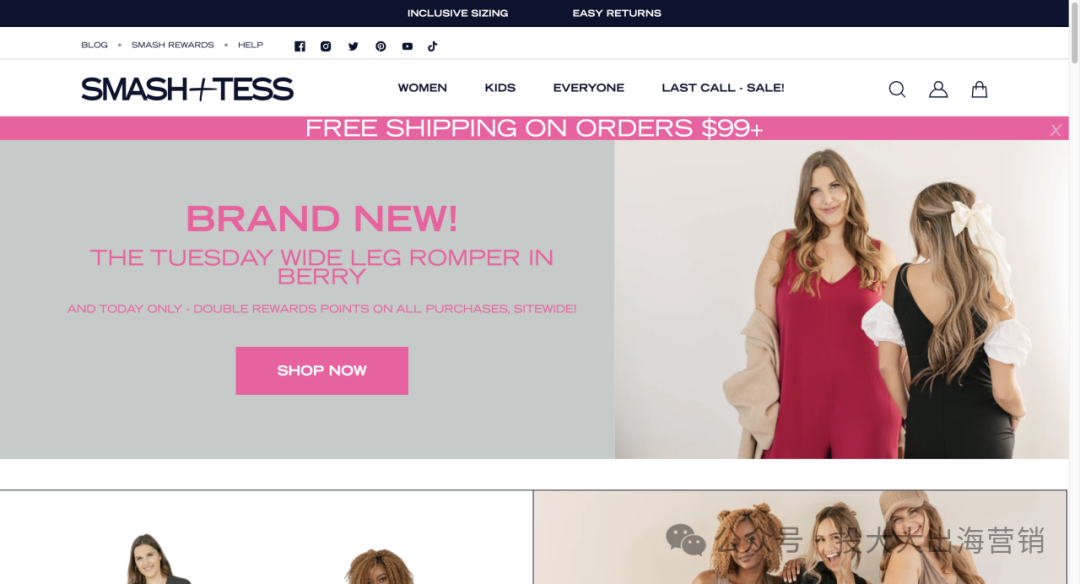 Unique Vintage是美国一个专做复古风格服饰的电商品牌,尺码包容性强。目标用户群体是18-45岁的女性,追求个性表达、复古文化爱好者。